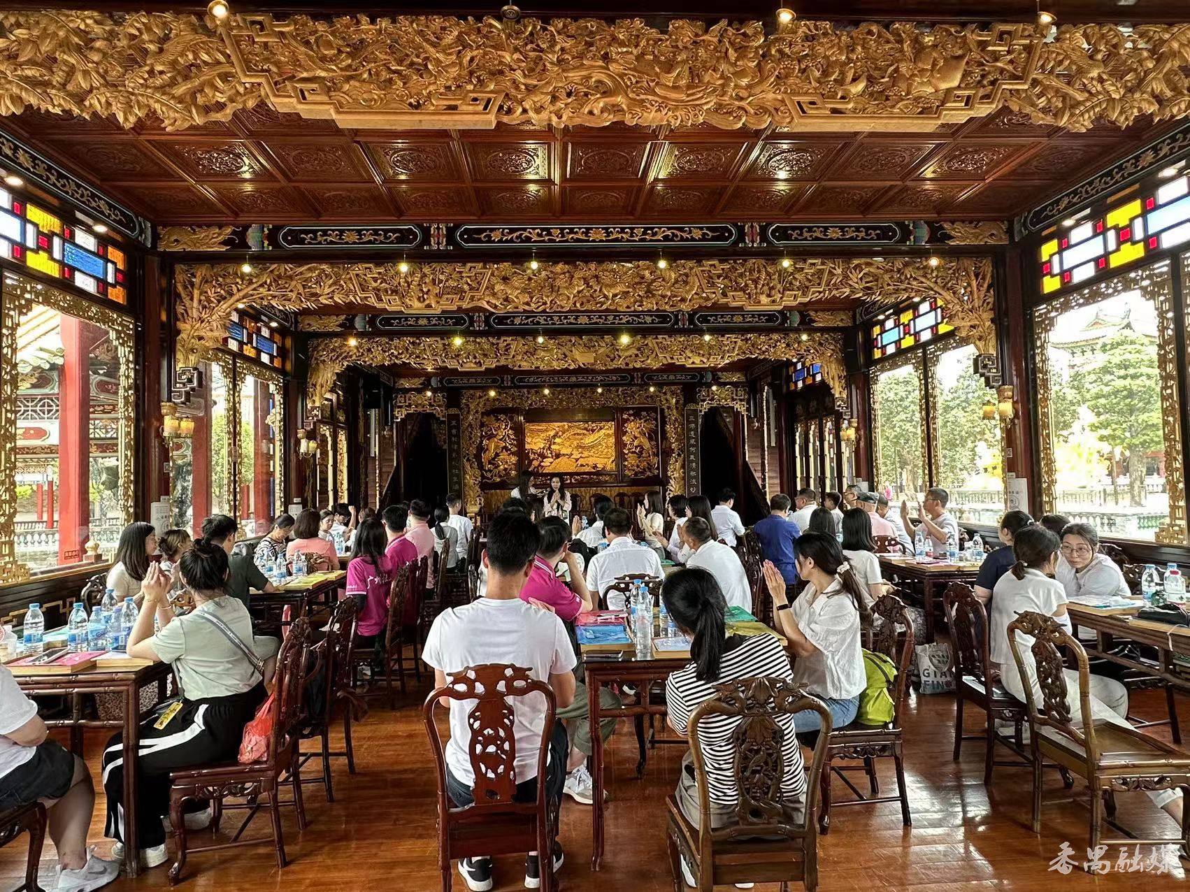 行径中,学员参不雅和学习了宝墨园传承包拯的清官文化,完成了“以景说廉”的学习浮现,从党的历史征途领受红棉精神。随后,在宝墨园的紫洞舫内,开展了《中国礼义文化培植》文化课程讲座,课程上,邀请掂量本分西席中国礼节的传统文化培植及预见,同期普及了沙湾古镇的历史行状。
